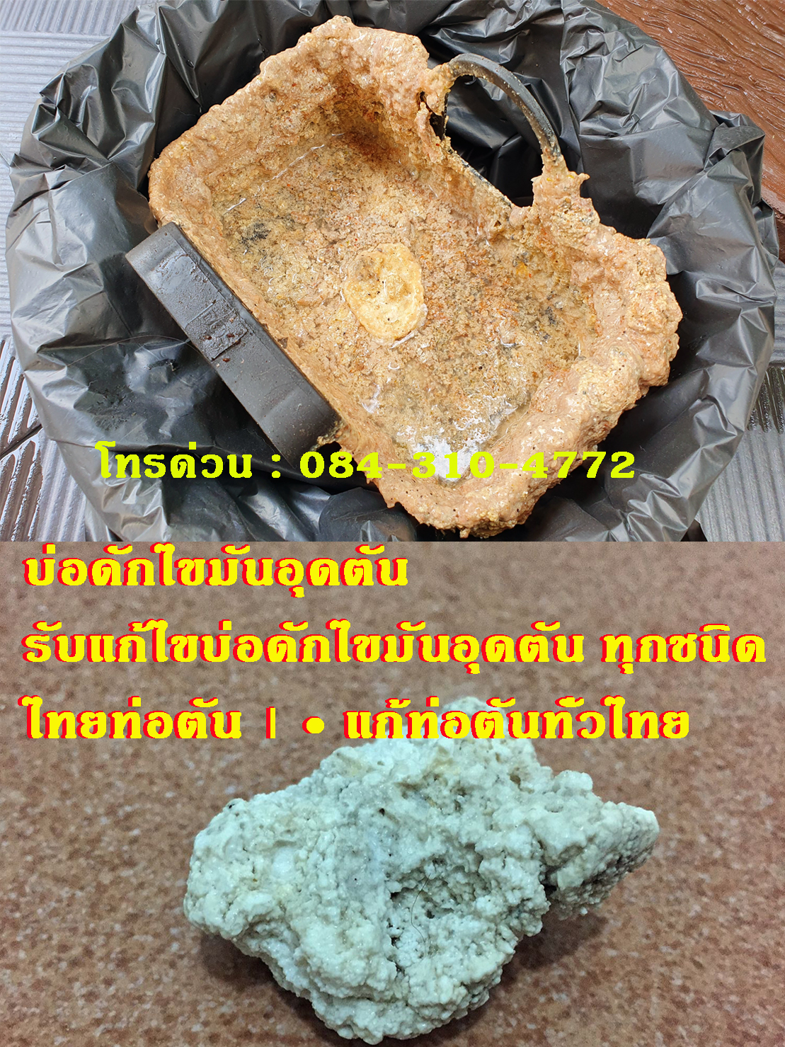 รับแก้ไขปัญหาท่ออุดตัน ท่อน้ําทิ้งตัน ทุกปัญหา ทุกชนิด ปรึกษาปัญหาท่อตัน ฟรี 24 ชม งานด่วน แก้ไขไม่ได้ ไม่คิดเงิน ไทยท่อตัน Hot Line Tel : 084-310-4779